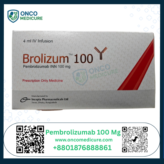Brolizum 100 Mg vials must be stored in a refrigerator at 2°C to 8°C. Do not freeze or shake. Protect from light and keep the vial in its original carton until use. After dilution, the solution must be used promptly or stored for a short time under conditions as recommended. Conclusion Brolizum 100, or Pembrolizumab, represents a new generation in cancer therapy, marshaling the power of the immune system against malignancies in ways that are proving more effective and long-lasting. Targeting the PD-1 pathway makes this antibody a cornerstone of modern immuno-oncology. If properly administrated and monitored, it offers clinically significant benefits and improvements in the quality of life of patients with various types of advanced cancers.